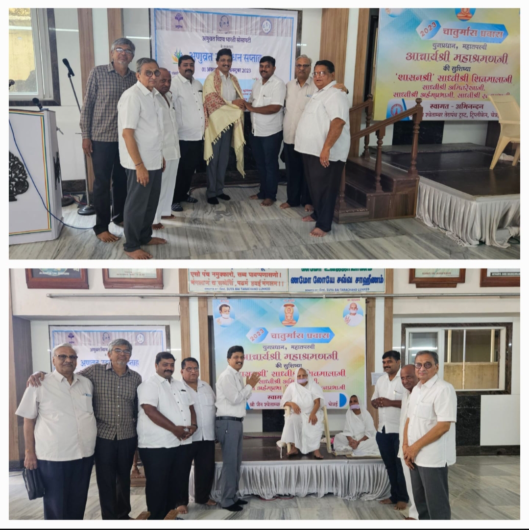 संपतराज चोरड़िया ने सभी को स्वागत किया एवं गौतमचंद सेठिया ने धन्यवाद ज्ञापित किया।आज के कार्यक्रम में अणुव्रत समिति के अध्यक्ष श्री ललित कुमार आंचलिया एवं उपाध्यक्ष श्री अरिहंत बोथरा भी उपस्थित थे।
