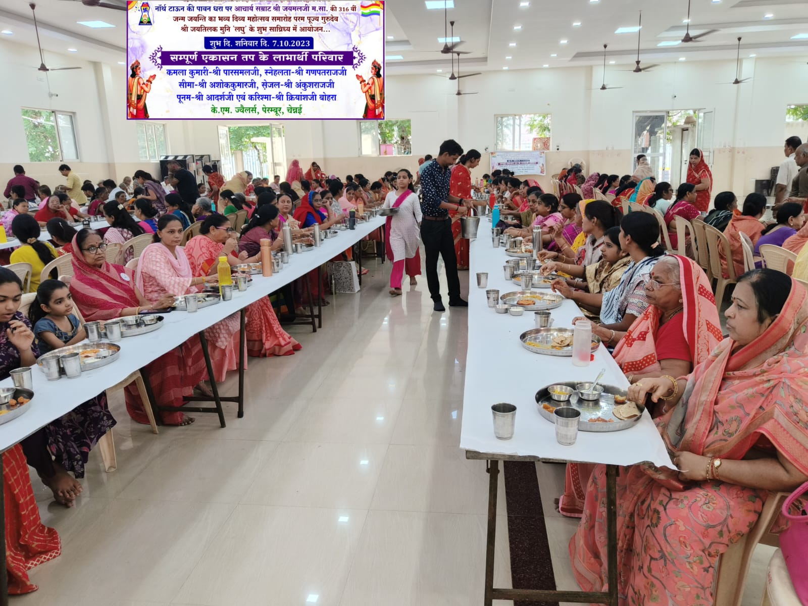 यस यस जैन संघ नार्थ टाउन द्वारा आचार्य जयमलजी म सा की जयंती के उपलक्ष्य में एकासन दिवस मनाया गया जिसमें करीब 500 लोगों ने एकासन किया।