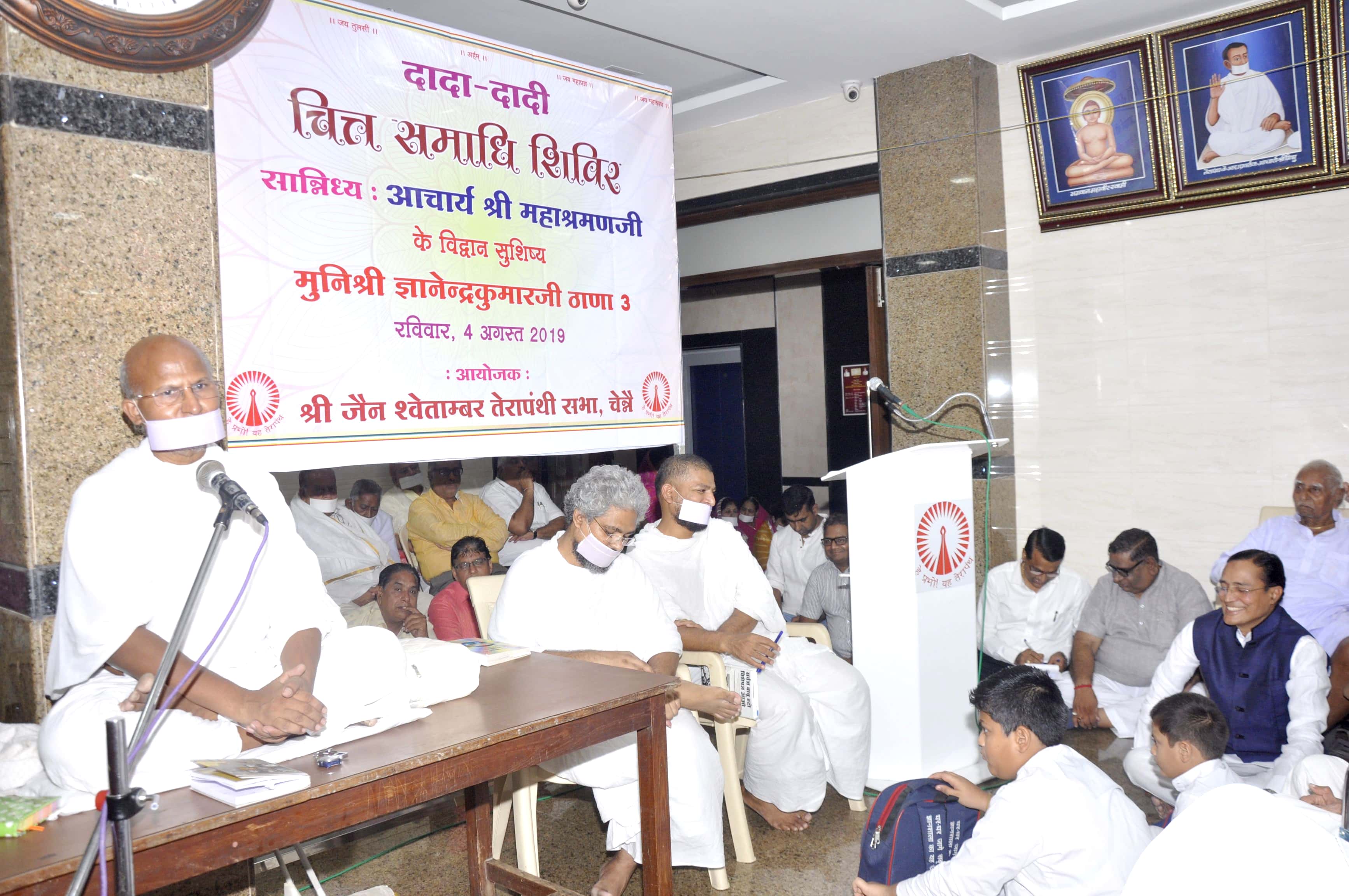 स्थानीय साहूकारपेट स्थित तेरापंथ सभा भवन में मुनि श्री ज्ञानेन्द्रकुमार के पावन सान्निध्य एवं श्री जैन श्वेतांबर तेरापंथी सभा के तत्वावधान में एक दिवसीय दादा दादी चित्त समाधि शिविर का आयोजन किया गया|