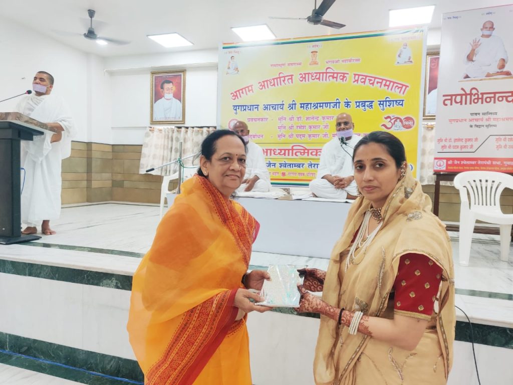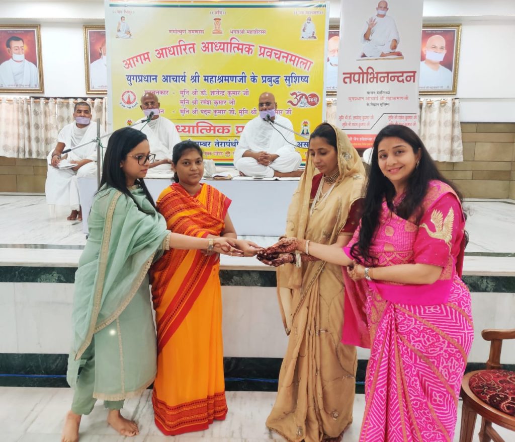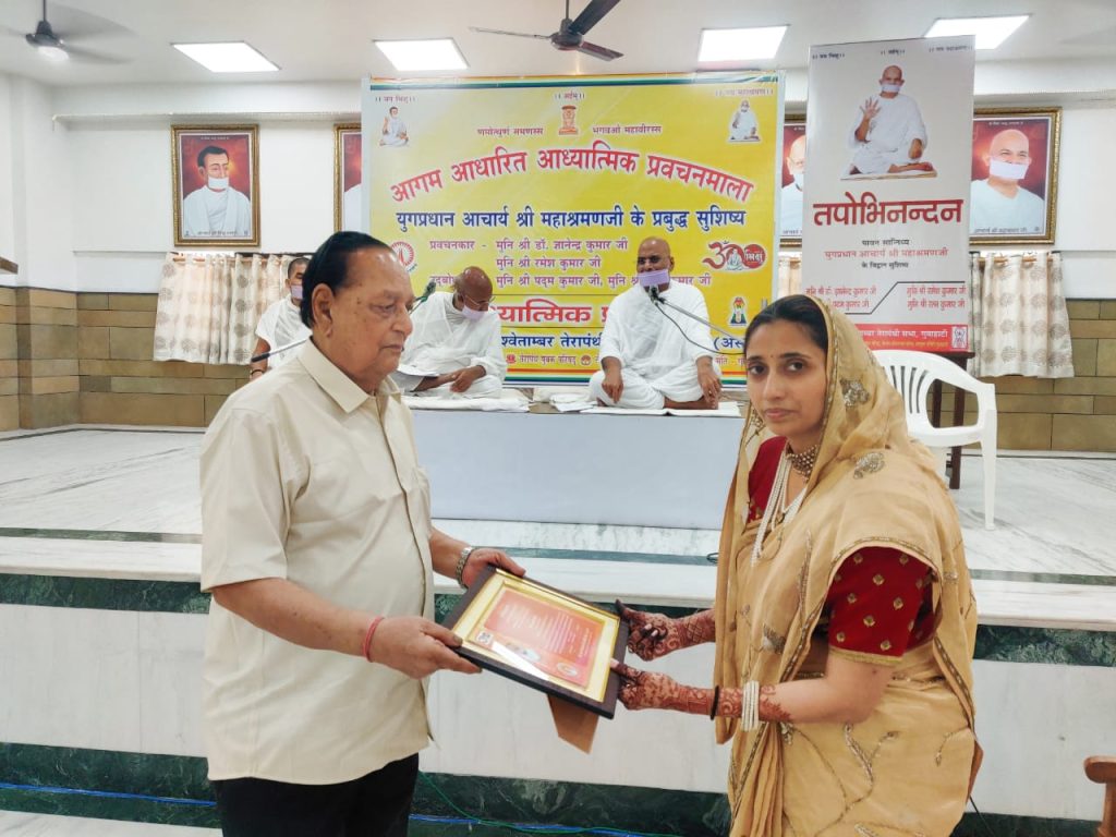 आचार्य महाश्रमण के प्रबुद्ध सुशिष्य मुनि डॉ. ज्ञानेंद्र जी कुमार, मुनि रमेश कुमार जी, मुनि पद्म कुमार जी एवं मुनि रत्न कुमार जी के पावन सान्निध्य में बुधवार को स्थानीय तेरापंथ धर्मस्थल में पूर्वी नाहटा (धर्मपत्नी : पीयूष नाहटा) के अठाई (8) की तपस्या के उपलक्ष्य में तपोभिनंदन समारोह का आयोजन किया गया। इस अवसर पर तपस्विनी बहन का तेरापंथी सभा द्वारा तपोभिनंदन किया गया।