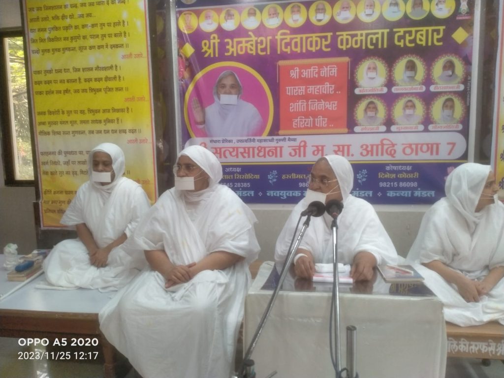 हमारे भाईन्दर में विराजीत उपप्रवृत्तिनि संथारा प्रेरिका सत्य साधना ज गुरुणी मैया आदि ठाणा 7 साता पूर्वक विराजमान हैl वह रोज हमें प्रवचन के माध्यम से नित नयी वाणी सुनाते हैं, वह इस प्रकार हैंl