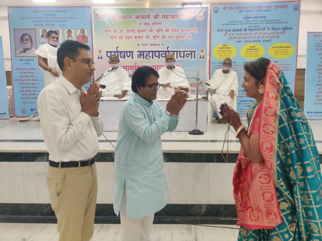 इस अवसर पर आस्था संचेती (धर्मपत्नी : सिद्धार्थ संचेती) के नौ (9) की तपस्या की अनुमोदना पारिवारिक सदस्यों के साथ तेरापंथी सभा, गुवाहाटी की ओर से साहित्य एवं अनुमोदना संदेश प्रदान कर की गई। कार्यक्रम का संयोजन सभा के वरिष्ठ सहमंत्री राकेश जैन ने किया।