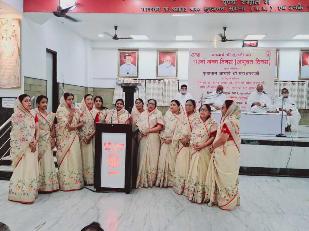 युगप्रधान आचार्य श्री महाश्रमणजी के प्रबुद्ध सुशिष्य मुनि श्री डॉ. ज्ञानेन्द्र कुमारजी, मुनि श्री रमेश कुमारजी, मुनि श्री पद्म कुमारजी एवं मुनि श्री रत्न कुमारजी के पावन सान्निध्य और श्री जैन श्वेताम्बर तेरापंथी सभा एवं अणुव्रत समिति, गुवाहाटी के तत्वावधान में सभी संघीय संस्थाओं के सहयोग से वृहस्पतिवार को प्रात: 9 बजे से स्थानीय तेरापंथ धर्मस्थल में गणाधिपति गुरुदेव श्री तुलसी का 112वां जन्मोत्सव अणुव्रत दिवस के रूप में मनाया गया। इस कार्यक्रम में काफी संख्या में श्रावक-श्राविकाओं एवं समाजबंधुओं ने भाग लिया।
