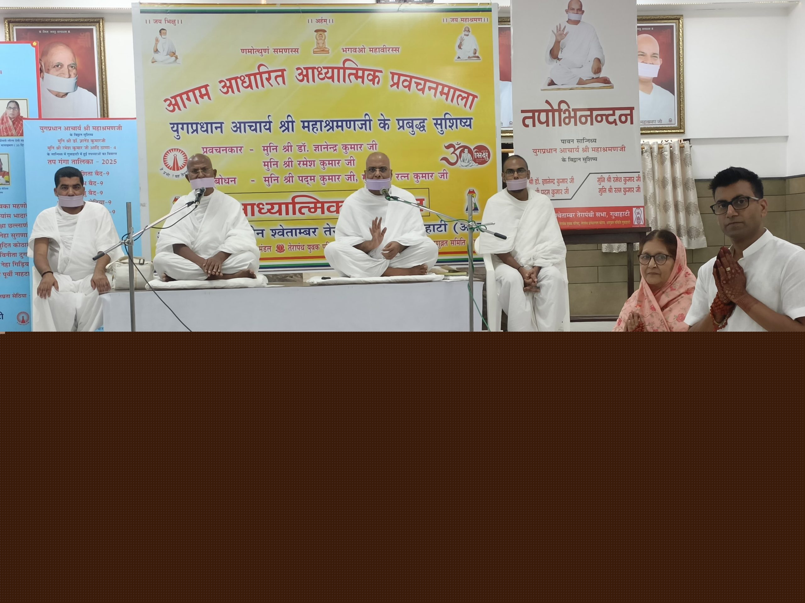 महातपस्वी आचार्य श्री महाश्रमण जी के प्रबुद्ध सुशिष्य मुनिश्री डाॅ ज्ञानेन्द्र कुमार जी , मुनि श्री रमेश कुमार जी आदि ठाणा -4 के पावन सान्निध्य में तेरापंथी सभा के तत्वावधान में आज दो तपस्वियों का तपोभिनंदन समारोह आयोजित हुआ। श्रीमती शांतिदेवी सुराना-8 की तपस्या, नरेंद्र जी सुराणा -8 दिन की तपस्या का प्रत्याख्यान करने के लिए तेरापंथ धर्मस्थल गूवाहाटी में उपस्थित हुए।