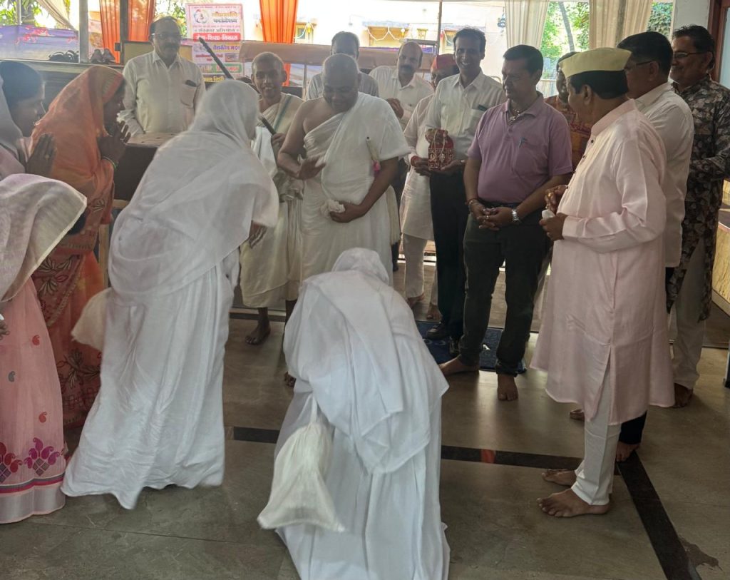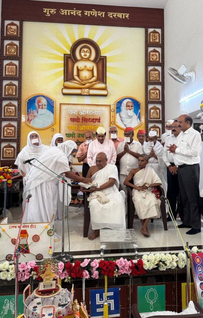 आचार्य श्री जी को भाईबीज के सअवसर पर उपप्रवर्तिनी गुरुमॉं चंद्रकलाश्रीजी आदि ठाणा 3 के और से गुरुमॉं ने आदर की चादर प्रदान कर अपनी क्रुतज्ञता प्रकट की! उसी प्रकार आकुर्डी निगडी प्राधिकरण श्री संघ के और से आचार्यश्री जी एवं साधुजी को संघाध्यक्ष सुभाषजी ललवाणी, विश्वस्त मंडल एवं आदिनाथ श्री संघ के अध्यंक्ष अनिलजी नहार एवं पदाधिकारियों द्वारा आदर की चादर प्रदान की गयी! आचार्य श्री जी ने महासाँध्वी जी एवं श्री संघ प्रति अपनी क्रुतज्ञता एवं स्नेहभाव जताये!