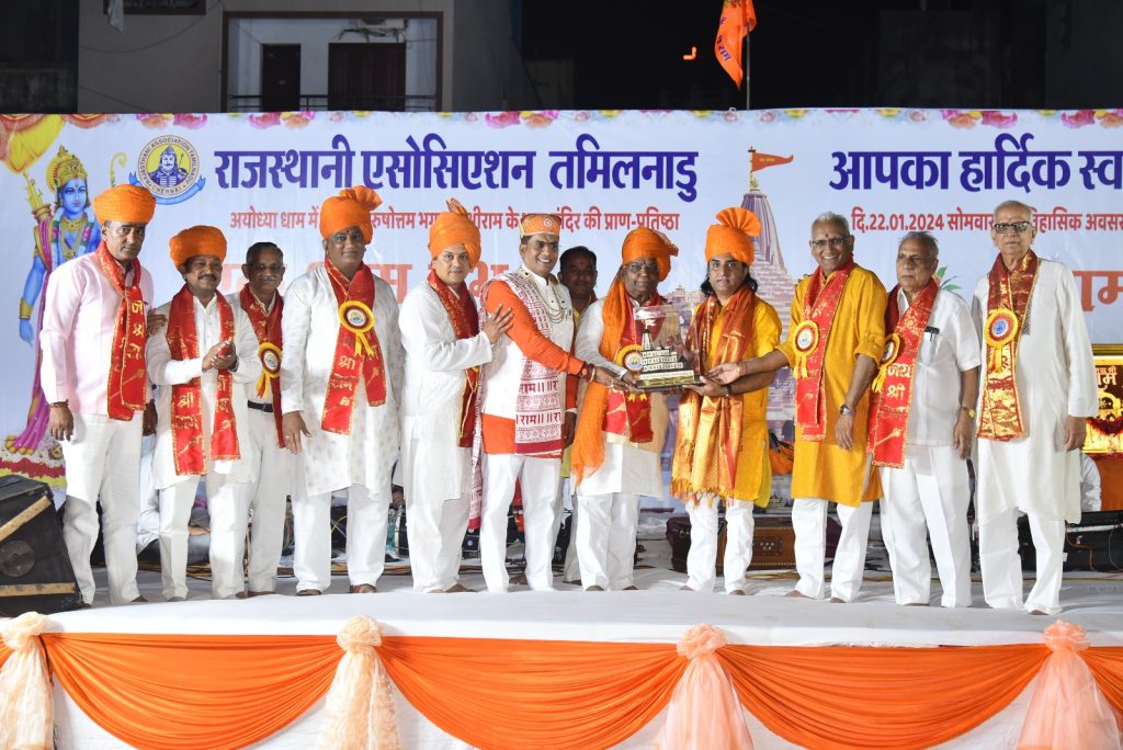 अयोध्या धाम में प्रभु श्रीराम मन्दिर प्राण-प्रतिष्ठा महोत्सव दि. 22.01.2024 को होने जा रहा है। इस अवसर पर भव्य भक्ति संध्या का आयोजन राजस्थानी एसोसिएशन तमिलनाडु द्वारा ‘एक शाम प्रभु श्रीराम’ के नाम’ दिनांक 17 जनवरी 2024, बुधवार को सायं 5 बजे से रात्रि 10 बजे तक साहुकारपेट, कोतवालचावडी में स्थित श्री कन्यका परमेश्वरी कॉलेज में सफलतापूर्वक संपन्न हुआ।
