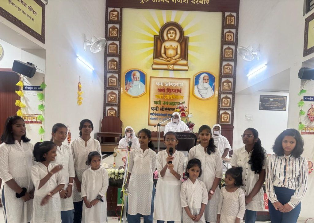 आध्यात्म के और हमे आगे बढ़ना है! आज सौ मंगलाजी कांकरीया ने 10 उपवास के प्रत्याख्यान गुरुमॉं के मुखारविंद से ग्रहण किये! श्री संघ के और से उन्हें नवाजा गया! आज के धर्मसभा मे पाथर्डी का महिलामंडल सौ. इंदिरा जी गुगले के नेत्रुत्व में लिटल कन्या मंडल सह उपस्थित हुआ! लिटल कन्या मंडल ने स्तवन के माध्यम से अपने भाव रखे! श्री संघ के और से पाथर्डी महिला मंडल , कन्या मंडल, एवं धुलियॉं से पधारे श्री रजनीकांतजी जैन दांपत्य का स्वागत सन्मान श्री संघ के और से सुभाषजी ललवाणी ने किया!